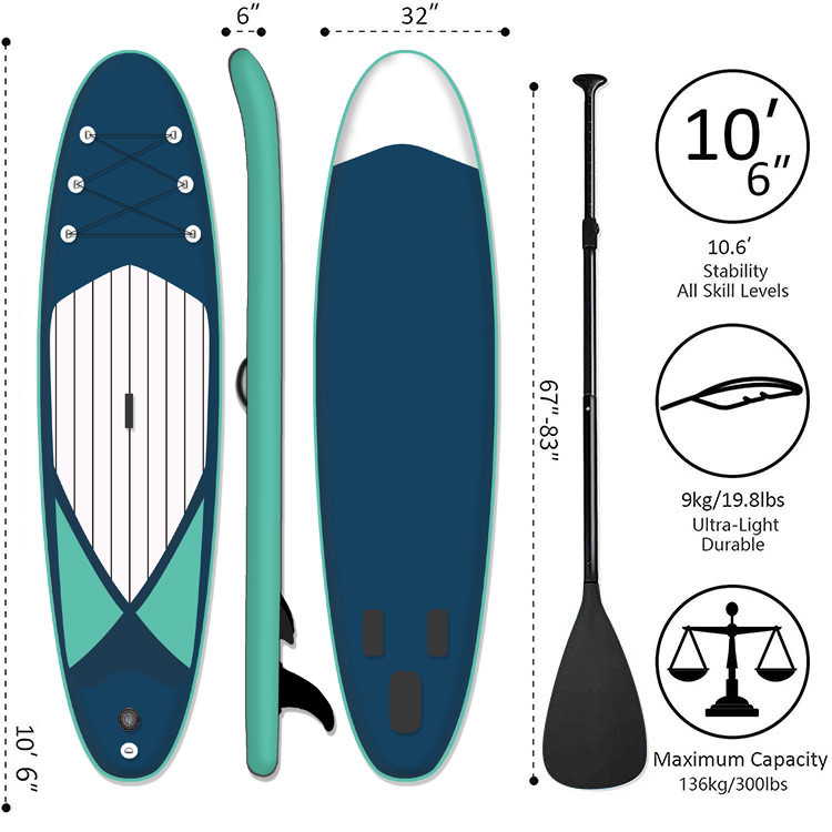 | বিশেষভাবে তুলে ধরা | ইনফ্ল্যাটেবল সার্ফবোর্ড সাপ বোর্ড,স্ট্যান্ড আপ প্যাডেল বোর্ড 10'6''x32''x6'',অতুলনীয় শক্তি ট্যুরিং সাপ বোর্ড |